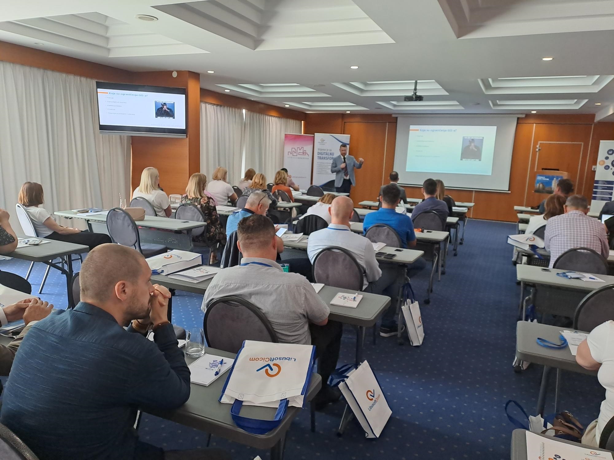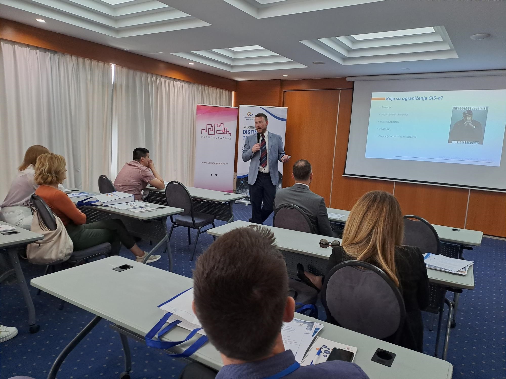 Govorili smo i o utjecaju novosti Zakona o radu na rad službenika u lokalnim jedinicama, radu za opće dobro vezano uz Zakon o socijalnoj skrbi te o važnosti Strategije upravljanja imovinom za JLPRS, ali i o važnosti geopodataka koji su savršen izvor za povećanje prihoda. Pritom smo ukazali na činjenicu da bi svaka jedinica trebala vidjeti s čime sve raspolaže kako bi kreirala geopodatke i uz pomoć njih povećala svoje prihode. Prezentirali smo i alate koji to omogućavaju.